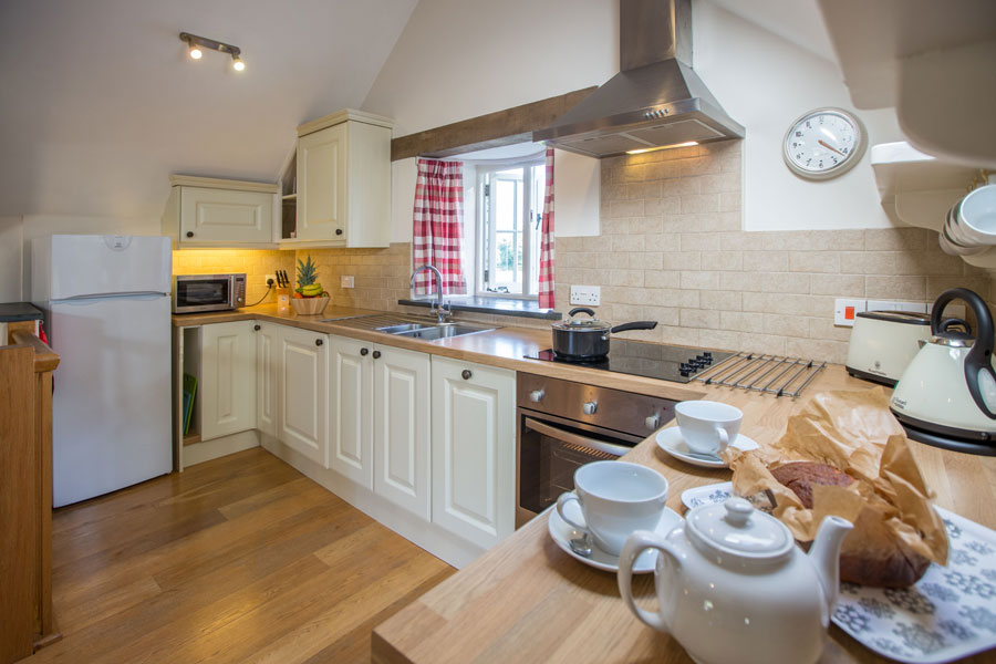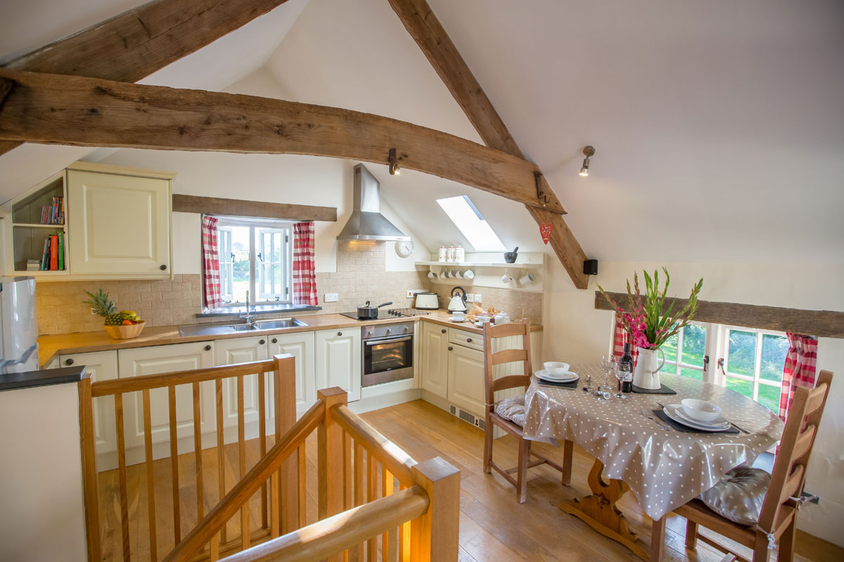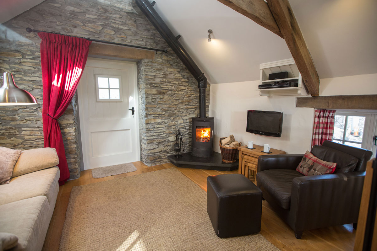 This topsy-turvy cottage has the living accommodation on the first floor to make the most of the idyllic views. The open-plan space has everything you need and is an ideal space for cooking, eating, sitting and relaxing. Sit back under the oak beams and enjoy the luxury of lighting the woodburner and sitting back with a glass of wine, a good book or watch a film.